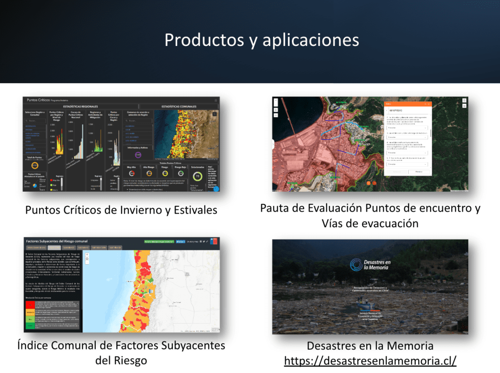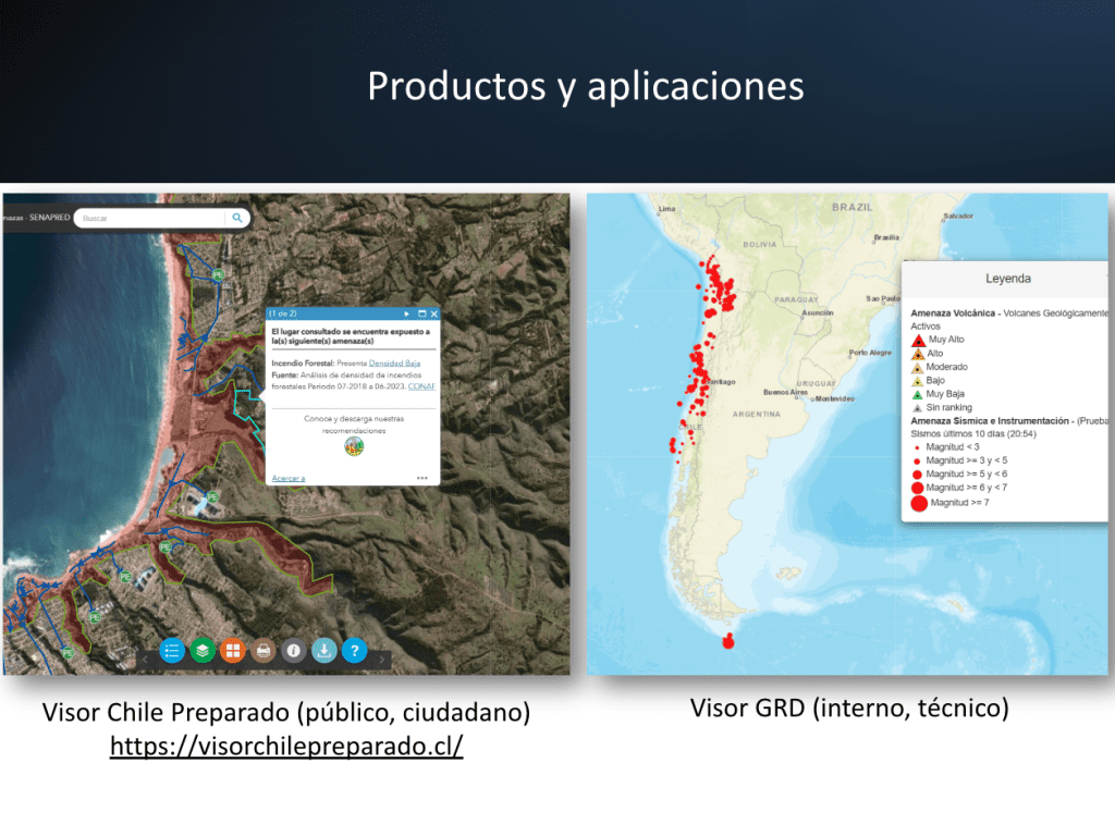 Nicolás Tapia de SENAPRED Chile nos platicó de forma breve cómo desde esta dependencia han implementado el uso de datos, mapas y tecnología geoespacial para automatizar la gestión de riesgos de desastres en Chile a través de las plataformas Desastres en la Memoria y Visor Chile Preparado.