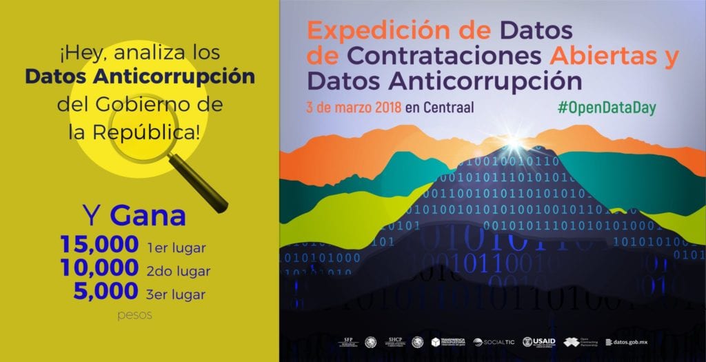 - Expedición de datos sobre contrataciones públicas y datos anticorrupción: en esta expedición te invitamos a analizar los datos abiertos de la plataforma de Contrataciones Abiertas del Gobierno de la República y los datos de la Guía de Apertura Anticorrupción MX, para presentar visualizaciones, análisis, blogs, infografías a partir del uso de datos.