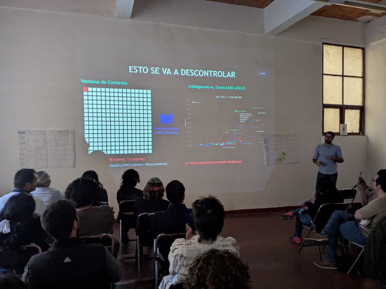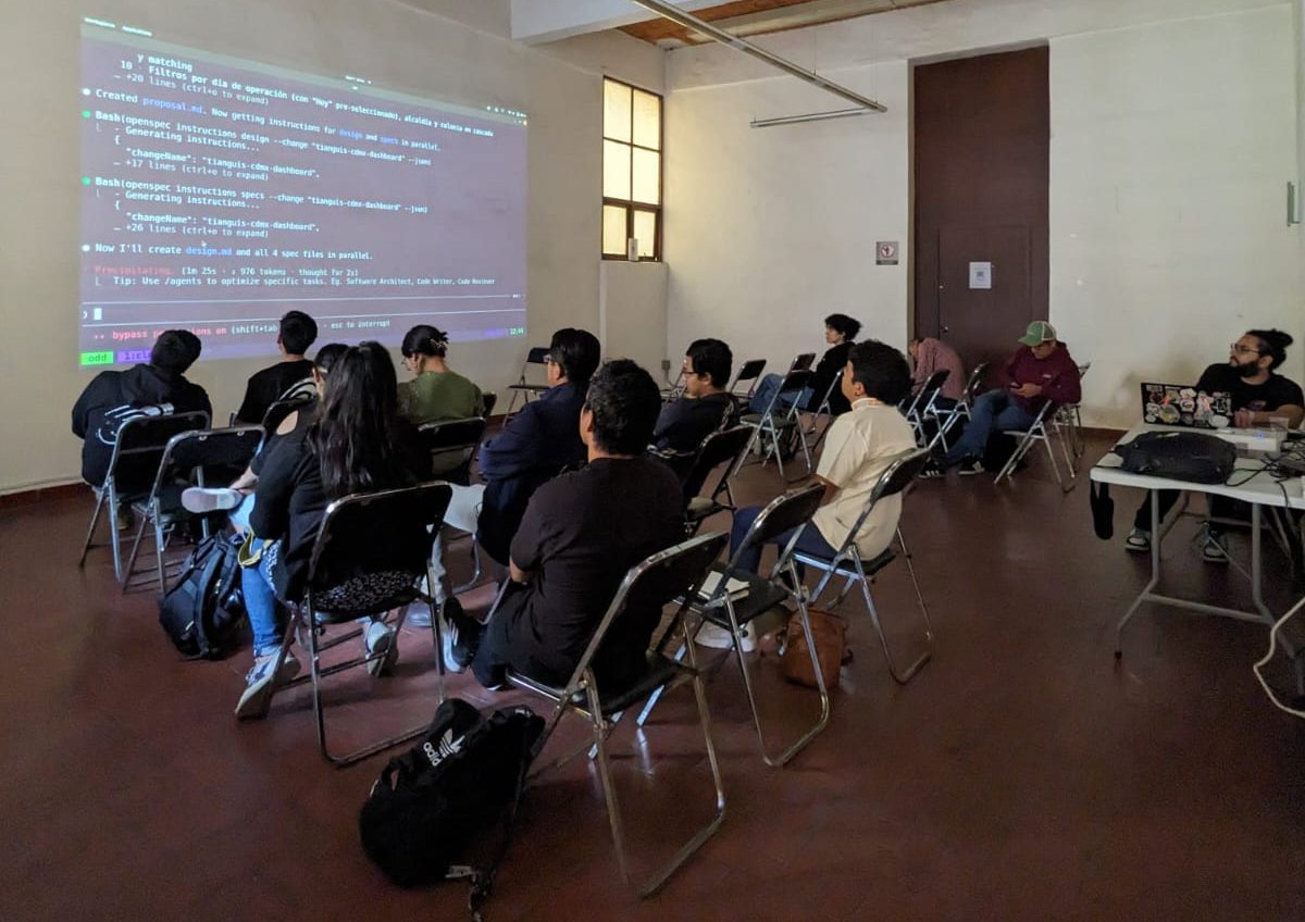 Finalizado este primer bloque de talleres, Mario Vásquez, profesor del ITAM exploró las oportunidades y dilemas de la programación asistida por inteligencia artificial en el taller  “Vibe Coding: exploraciones críticas hacia causas sociales”. Ahí aprendimos como sustituir instrucciones tradicionales y complejas en el desarrollo del software por un lenguaje más descriptivo. El éxito de este tipo de experiencias dateras radica en el intercambio de ideas en cadena, utilizando el razonamiento asistido para minimizar errores técnicos a la hora de programar.