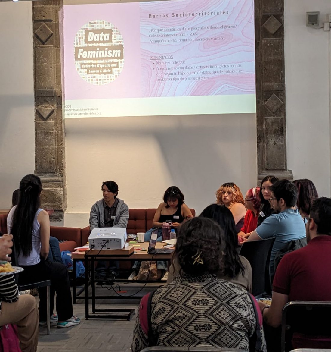 Y para concluir esta serie de reflexiones, el taller “Datos, mapas y género” impartido por Morras Socioterritoriales describió cómo las estructuras de poder moldean la información para ignorar algunas realidades, en particular aquellas que viven las mujeres y grupos en contexto de marginalización. Para visibilizar las realidades ocultas, se utilizaron dinámicas de mapeo cuerpo-territorio y de vida cotidiana para visibilizar lo que los datos convencionales omiten o representan de manera errónea mediante la exploración de herramientas, como OpenStreetMap y uMap.